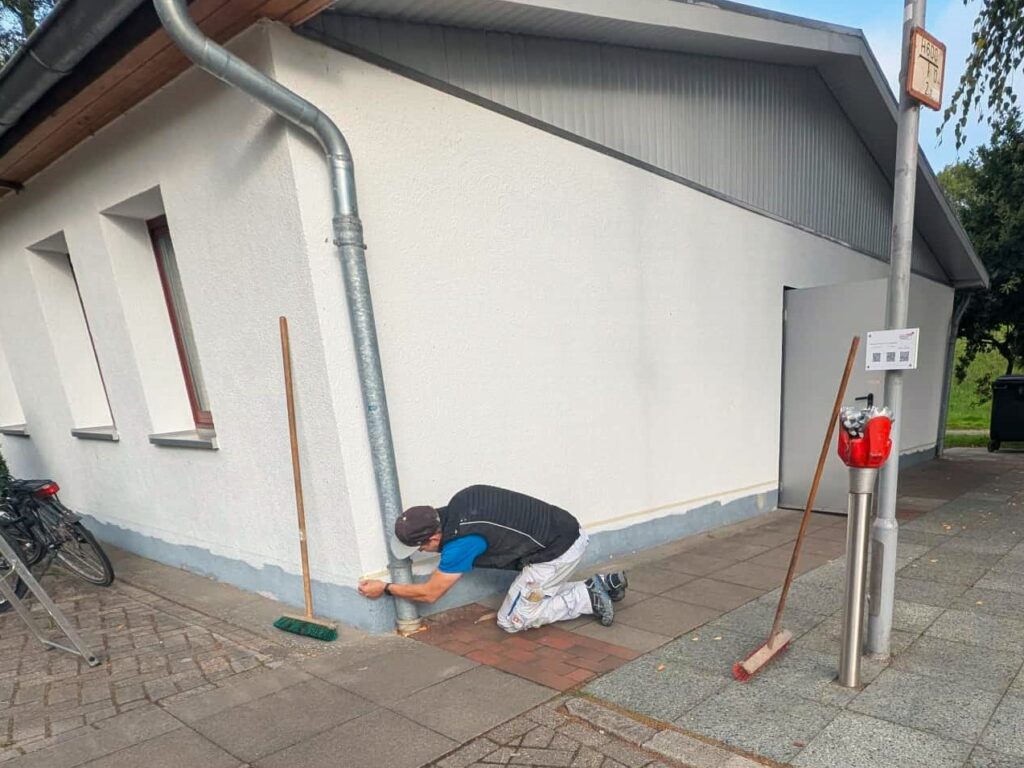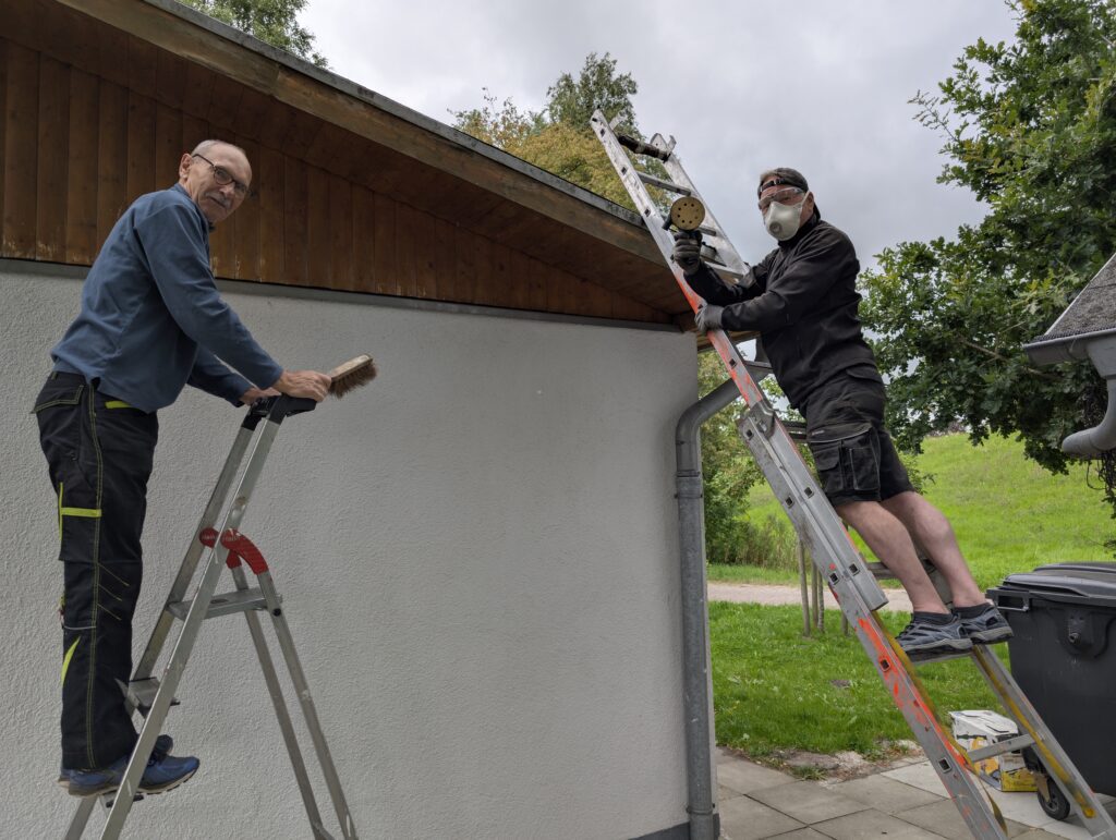 Schon Tage zuvor hatten Gerhard Maynicke und Michael Dzaczek die Giebel abgeschliffen und Wolfram Eichhorn hatte ihnen einen schicken Grauanstrich verpasst.
