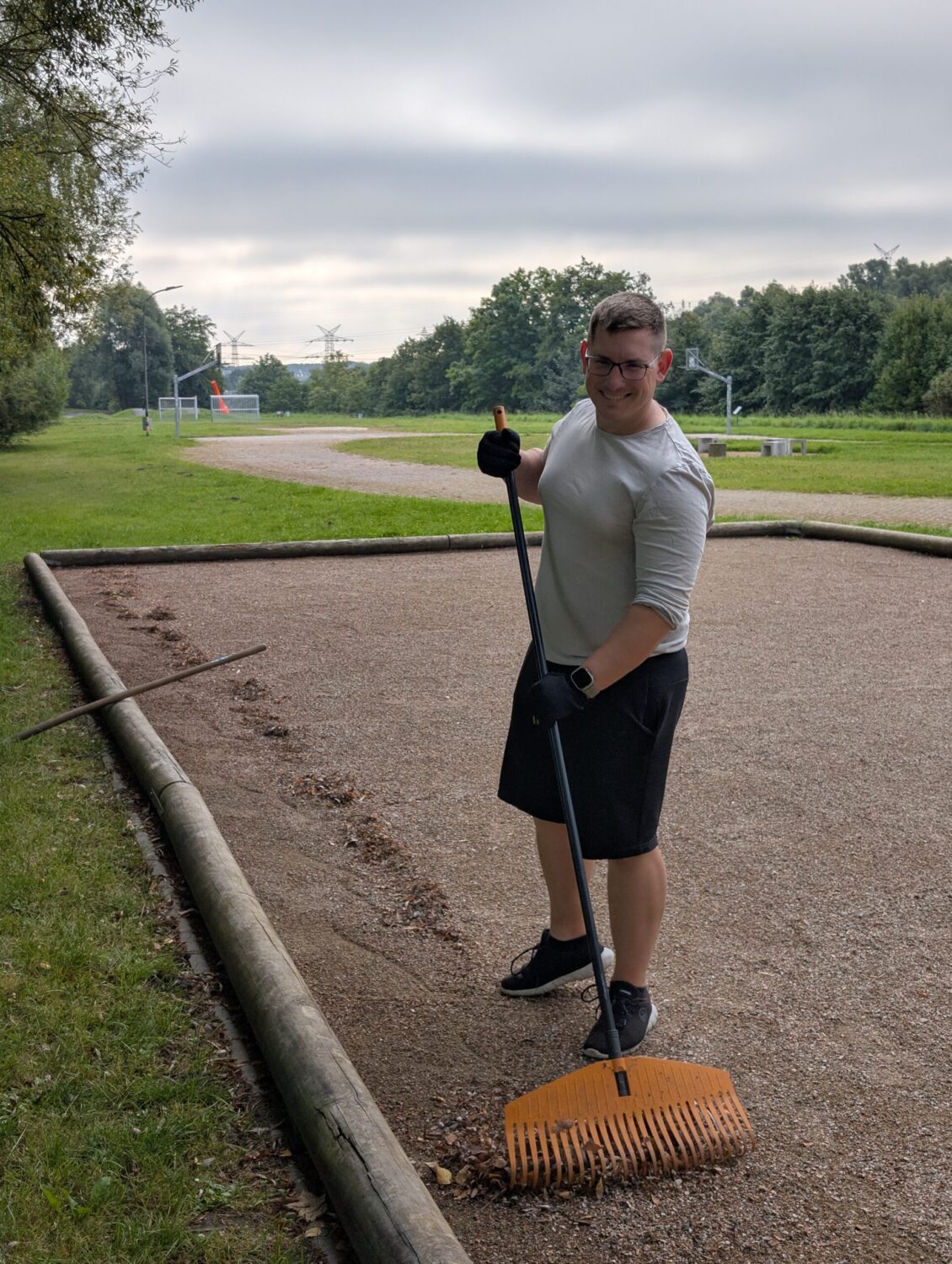 Conny Eichhorn säuberte das Beet vor dem Haus sowie das Rosenbeet vor den Schiffsmodellbauern. Jendric Naß harkte sehr sorgfältig den Bouleplatz ab.