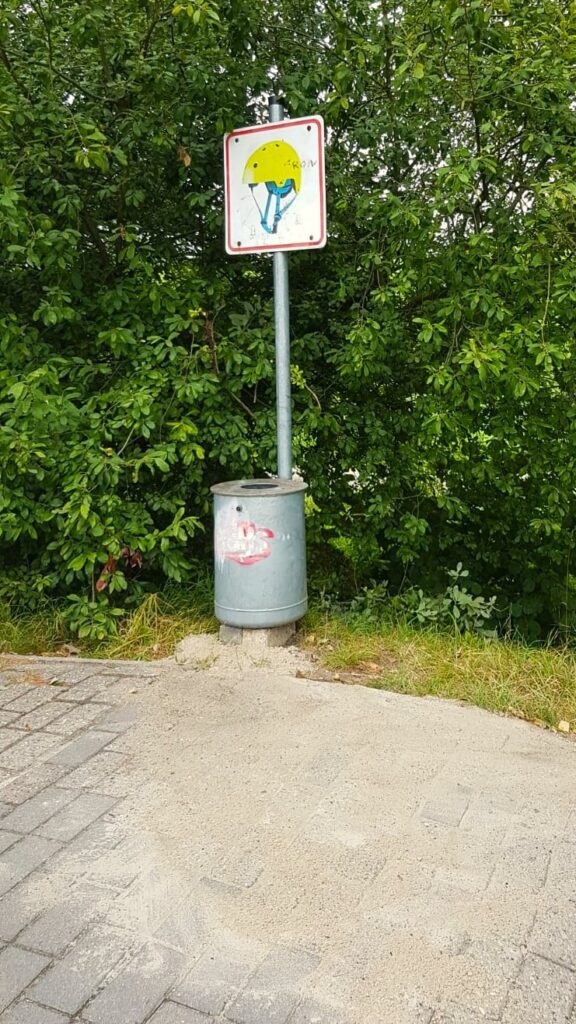 Peter Ratke und Jendric Naß pflasterten 14 Betonsteine auf dem Starthügel der BMX-Bahn neu ein, die irgendwelche „Hirnis“ herausgerissen hatten. Außerdem reinigten sie das beschmierte Helm-Hinweisschild.