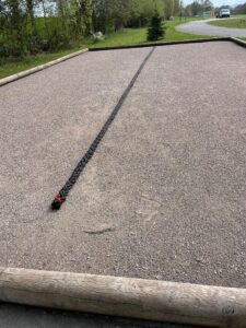 Walter Iken hat uns einiges schönes maritimes Material vermacht. Ein dicker Tampen trennt nun die Boulebahn in zwei Bahnen, was sehr gut angenommen wird. Conny Eichhon hatte den gekärchert, Wolfram hat ihn befestigt.