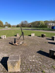 Ein Anker, den Walter‘s Vater aus dem Watt vor dem alten Voslapper Leuchtturm geborgen hatte, schmückt nunmehr die Fläche zwischen den Betonsitzen. Ein neuer Anstrich ist demnächst noch fällig.